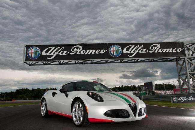 El Alfa Romeo 4C, luciendo los colores rojo, blanco y verde de la bandera italiana, hará de coche de seguridad oficial en el circuito de Silverstone, donde se celebra la ronda correspondiente del mundial de Superbikes, este mismo fin de semana.