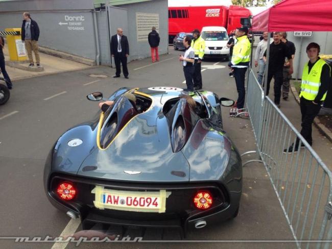 Hace solo unas horas os contábamos que Aston Martin presentará mañana, coincidiendo con las 24 Horas de Nürburgring un coche conmemorativo de su centeneario, basado el el clásico DBR1. Nuestro compañero Javier Álvarez estaba dando una vuelta por el Nordschleife cuando se ha encontrado con el coche en cuestión unas horas antes de su debut.