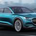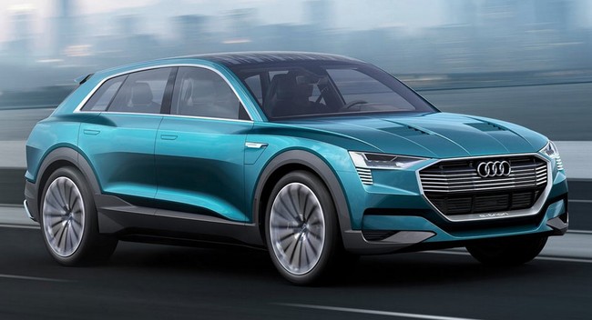 Presentado en el Salón de Frankfurt en 2015, el SUV eléctrico luce una interesante línea de techo de estilo coupé, que desciende hacia la zaga, y unos prominentes pasos de rueda que como las taloneras están fabricados en material plástico, aportando una buena dosis de robustez y carácter campero. Por tamaño, se encuentra entre el Q5 y el Q7.