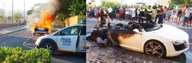 Un Audi R8 fue robado en Ibiza, una mala noticia para el dueño. Los ladrones lo abandonaron por un motivo desconocido y el coche empezó a arder, por otro motivo desconocido también. Peor noticia para el dueño, su pequeñín no volverá a rodar.