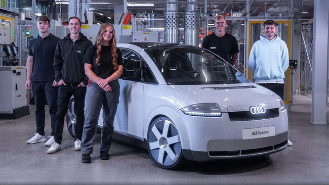 De esa forma, este Audi A2 parece un restyling muy profundo del modelo de hace 25 años, pero los cambios no terminan ahí. Los estudiantes de Audi también han hecho algún cambio en el interior, donde hay nuevos asientos, y han cambiado el tren motriz de combustión por uno completamente eléctrico, aunque Audi todavía no ha proporcionado detalles sobre la potencia del motor eléctrico o la batería que han utilizado.