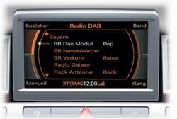 Audi lleva desde 2004 desarrollando productos relacionados con el DAB (Digital Audio Broadcasting), algo así como la idea de la TDT aplicada a la radio: más canales y más capacidad de decisión e interacción por parte del usuario. Esta tecnología ya está disponible en el A6, A8 y Q7.