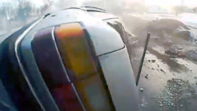 Conducir por Rusia, o cualquiera de sus ex-repúblicas satélite, es una profesión de riesgo. Que se lo digan al conductor de este ¿autobús? que fue acariciado por la muerte pero lo dejó para otro día. Estamos dentro de población, por la tarde, cuando sobreviene un potencial _audiazo_ en toda la cara.