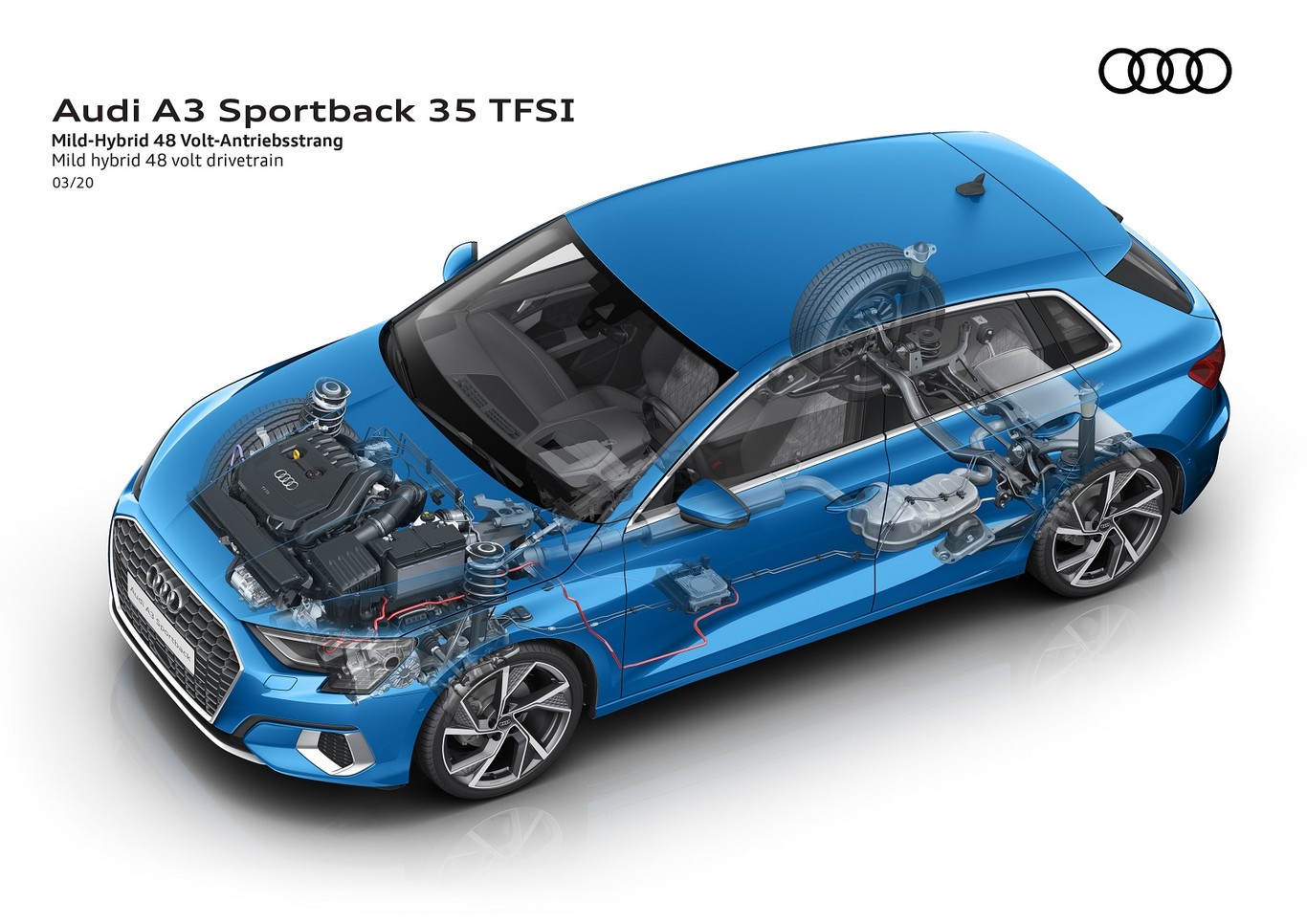 También en carrocería sedán, el A3 Sportback recibirá un sistema de hibridación ligera de 48 V.