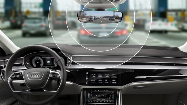 Aunque el fabricante alemán no ha dado muchos detalles acerca del sistema o en qué modelos se integrará, sabemos que el ITM 'es' el espejo retrovisor, y funciona como un transpondedor que se conecta con los sistemas de peaje. Audi amplía así su oferta de tecnología de Vehículo a Infraestructura (V2I) permitiendo que el propio coche interactúe con la vía.