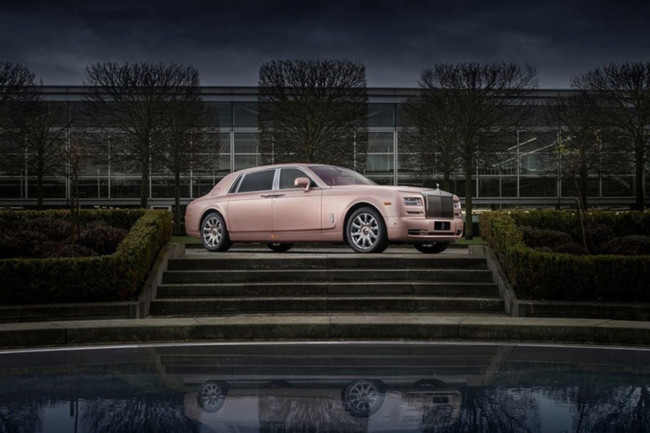 Rosa, diferente y elegante, así es este Rolls Royce Phantom con carrocería de batalla larga que, aunque en teoría no hay dos Phantom iguales, éste desde luego que se parece a muy pocos. Y es que cuenta con una pintura muy especial.