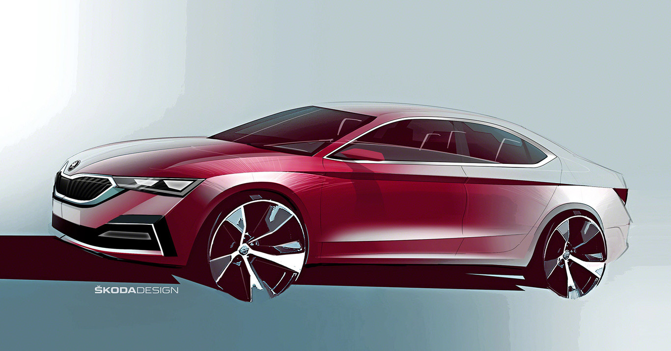 Los bocetos muestran un aspecto más deportivo, con una caída de techo de corte coupé. Škoda también señala algunos aspectos distintivos como sus ruedas de generoso tamaño o las ópticas traseras con elementos cristalianos como dos de los aspectos más destacados que pueden verse en este primer adelanto del Octavia.