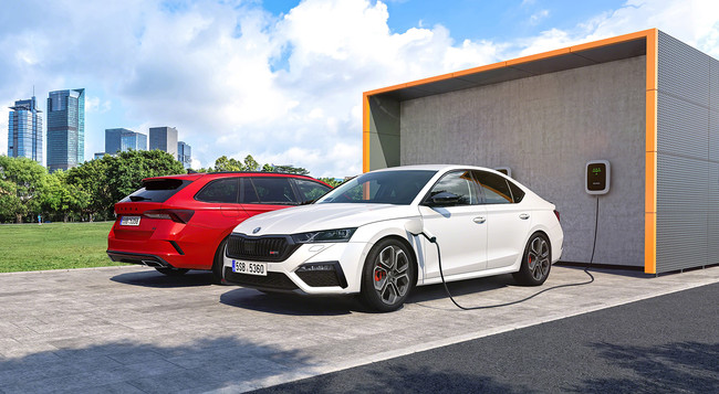 La batería, que puede recargarse enchufada o bien a un Wall Box o bien a un enchufe doméstico, se aloja tras el eje trasero, por lo que la capacidad de maletero se ve reducida respecto a los opciones térmicas del nuevo Octavia: 450 litros en la berlina y 490 litros en la variante familiar. Las versiones de combustión la fijan en 610 litros y 640 litros respectivamente.