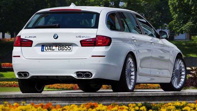 El BMW Serie 5 Touring recibe la vacuna B5 Biturbo por parte de Alpina y será presentado oficialmente en el próximo Salón de Ginebra. El tratamiento incluye esteroides para el exterior en forma de kit aerodinámico y llantas Alpina Classic de 20 pulgadas, una nueva suspensión regulable electrónicamente y también una profunda revisión mecánica que añade, por ejemplo, un nuevo sistema de escape.