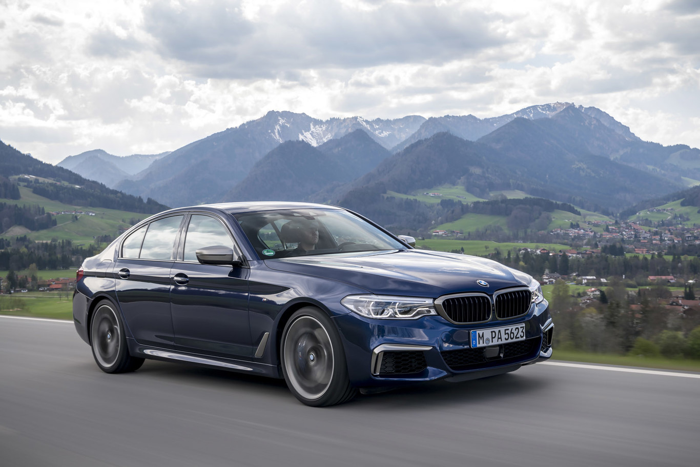 En el habitáculo luce una tapicería en cuero Dakota de color negro con costuras en contraste de color azul, la última interpretación del volante M, alfombrillas específicas, pedalera de aluminio, inserciones decorativas especiales y toda la tecnología de la Serie 5, como el Control de Crucero Adaptativo, el Asistente de Cambio de Carril, el Aparcamiento Remoto, el Asistente Inteligente de Límites de Velocidad o los servicios conectados de BMW Connected.