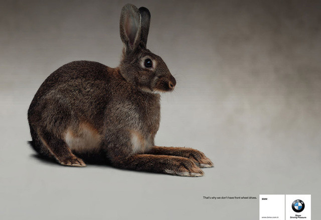 BMW hizo anuncios como este del conejo: "Por eso no tenemos coches de tracción delantera". Pero en 2010 se anunció que eso no iba a ser más así, y que algunos modelos iban a aprovechar la plataforma para MINI --UKL, o "subclase" en alemán-- para ser más lógicos en el mercado. Y lo que queda: en 2017 tendrán 15 modelos de tracción delantera, incluyendo MINI.