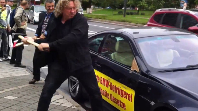 De acuerdo, Dolorpasión™ ocurre en domingo... salvo que entre todos vosotros nos reventéis el buzón con una truculenta noticia que tiene como protagonistas a un tipo llamado Hadi Pourmohseni, su amigo Thomas Brunner (en la foto, en primer término) y un BMW M6 de color negro, la puerta del Salón de Frankfurt como escenario, y un mazo y una hacha como armas de destrucción masiva.