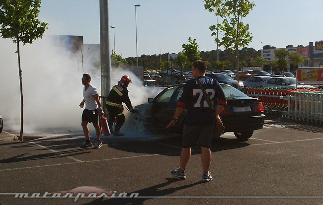 Sucedió en los alrededores de Toledo (en el aparcamiento del Parque Comercial Abadía) el pasado lunes. Pese a que el Serie 3 afectado era un diésel y que --como sabemos-- el gasóleo lo tiene algo difícil para explotar por las buenas, ver un coche que sin venir a cuento echa humo es preocupante. Por eso el resto de usuarios del parking fueron alertados para que retiraran sus vehículos del lugar.