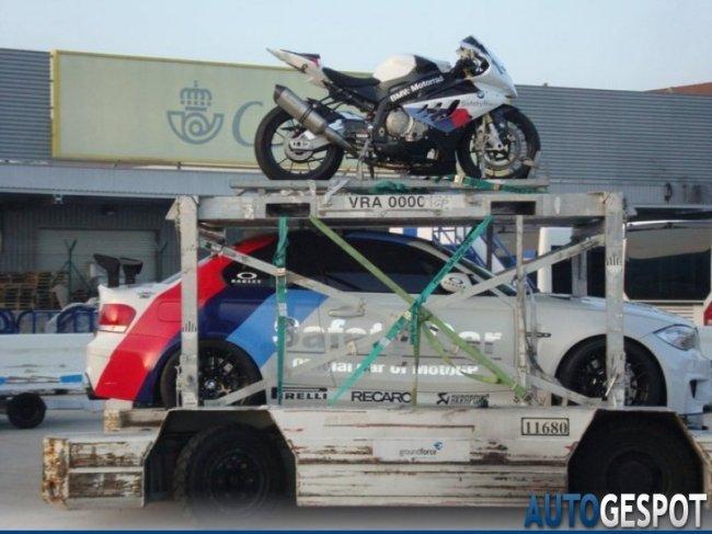 A través de las fotos que nos envía nuestro lector DTS (gracias) podemos ver al nuevo Safety Car y la nueva moto oficial de MotoGP, la BMW S1000RR embarcando desde Barcelona hacia Qatar para la primera carrera de la temporada. Y no se trata de un BMW Serie 1 M Coupé cualquiera…