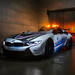 El fabricante anuncia un centro de gravedad 1,5 centímetros más bajo en este Safety Car que en el i8 Roadster de producción, y por supuesto no faltan elementos específicos de un coche de seguridad, como el módulo de luces montado por encima de los asientos, las antenas de radio y GPS, cámara de marcha atrás o diversos sistemas de comunicación.