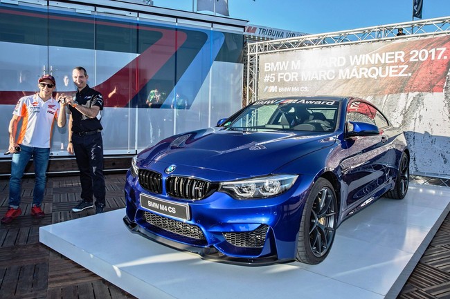 Contento y sonriente por su nuevo premio, Marc Márquez se lleva a casa un modelo muy especial, ya que el BMW M4 CS se producirá en edición limitada. Con 460 CV, la puesta a punto específica de los Competition Package, el CS es el modelo intermedio entre el M4 normal y el radical GTS que tuvimos ocasión de probar a comienzos de este año.