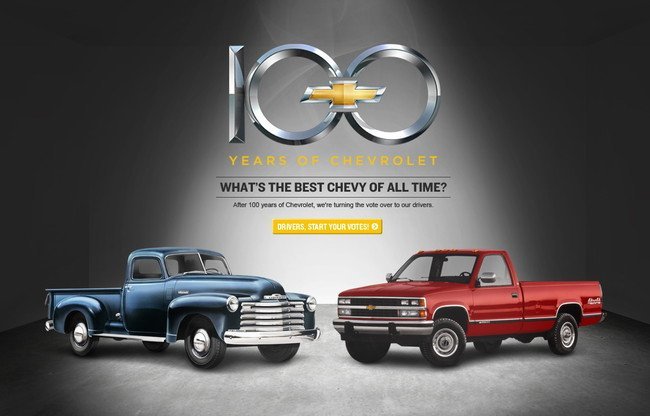 Hace un siglo natural, se fundó la marca de la pajarita. Con motivo de tan ilustre hito, Chevrolet está moviéndose mucho con nuevos modelos, eventos… y ahora una particular encuesta. Desde el 1912 Classic Six hasta el 2011 Volt, pasando por el 1953 Corvette y otros tantos… ¿cuál es el mejor?