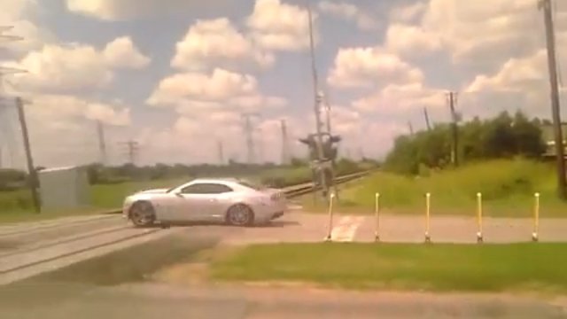 Tres chavales en Houston (EEUU) alquilaron/robaron (dependiendo de la fuente) un Chevrolet Camaro SS (422 CV) para grabar una bromita inocente con lo que parece ser un teléfono móvil. Consistía en pegar un saltito sobre un paso a nivel con barreras, pero a toda leche, para que el coche “volase”.
