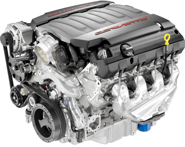 El small block atmosférico monoárbol 16 válvulas 6.2 V8 mantiene la cilindrada del Corvette C6, pero tiene numerosos cambios y rinde 450 CV. Destacamos el uso de inyección directa de gasolina hasta 150 bares, alzado de válvulas variable (CVVT) y desconexión selectiva de cilindros a baja carga. Este no llevará la pegatina de “Fuck the fuel economy”.