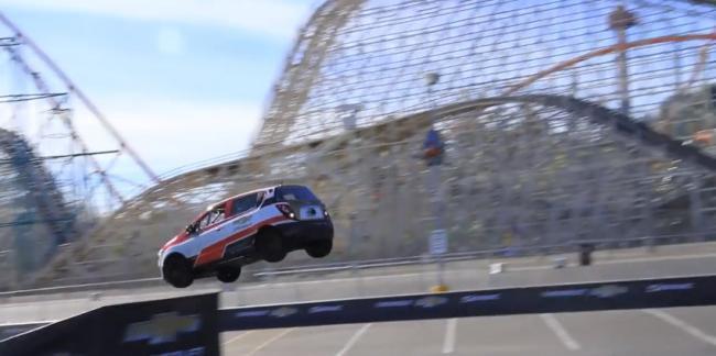 Eso es lo que ha hecho el famoso skater Rob Dyrdek al volante de un Chevrolet Sonic, conocido como Aveo en Europa. Gracias a las modificaciones que habían hecho sobre el pequeño utilitario para hacerle circular marcha atrás más rápido de lo habitual, el Sonic pudo hacer un salto de 27,2 metros sin demasiado problema.