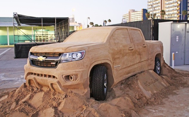 Parece mentira, pero para esculpir este Chevrolet Colorado 2015 en arena se han necesitado unos cinco días de trabajo y se han utilizado unos 34.000 kg de arena (casi 75.000 libras). Se ha realizado para los campeonatos de escultura en arena de Estados Unidos, en el muelle de San Diego, en California.