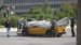 Por lo que se deduce de las imágenes, la calle ya estaba cortada por la policía mientras iban desfilando los coches del rodaje, entre ellos, el camión Optimus Prime… hasta que un coche de policía real, ajeno a la grabación, salió para atender una emergencia… y se cruzó con el Camaro.