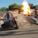 En cuanto a las explosiones, las técnicas que se usan dependen de la agresividad que se les quiera dar. Si se pretende conseguir una detonación muy violenta que eleve el coche con brusquedad se usa una carga pirotécnica externa. En cambio, si se busca un vuelco más suave se usa un pistón hidráulico en el exterior y explosivos en el interior.