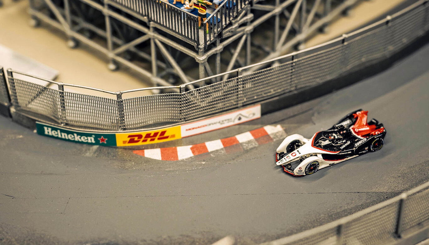 No es de extrañar, por tanto, que la maqueta de tren miniatura más grande del mundo esté en Alemania, en Hamburgo: la Miniatur Wunderland. Y lógicamente, Porsche tiene un hueco especial en esa maqueta: el Formula E más pequeño del mundo, rodando en el circuito de Mónaco. Y todo a escala HO, por supuesto.