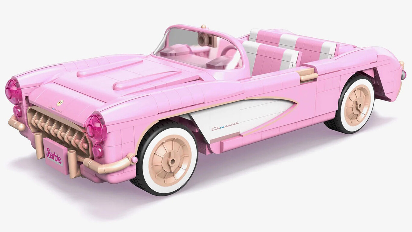 Mattel ha recurrido a la experiencia de su empresa MEGA, rival de LEGO, pero dar forma a este Corvette rosa que respeta todos los detalles del modelo de la película. Tiene 805 piezas, sus ruedas giran y pueden abrirse las puertas, el capó y el maletero. Además, incluye accesorios, como los patines de Barbie y las matrículas con el logotipo de la muñeca.
