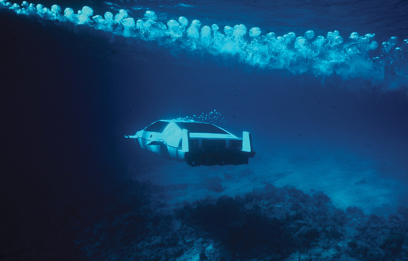 Si bien este Esprit podía propulsarse bajo el agua, una gran parte de las escenas de esta legendaria secuencia fueron grabadas con una réplica escala en el fondo marino de las Bahamas.
