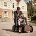 En esta nueva tanda dan la posibilidad de añadir un manillar en la parte de atrás y dos peldaños para los pies, para que te puedas subir detrás y dirigir el coche o sentarte directamente detrás del niño durante el paseo. Acorde con el diseño, viene un mando a distancia como el de tu coche -o puede que mejor- con el que se puede controlar el encendido, las tres velocidades de las que dispone o el freno.