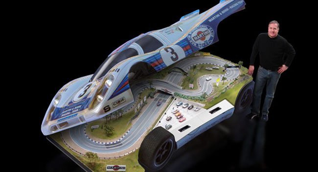 Se trata de una maqueta en escala 1:1 de un Porsche 917 que alberga en su interior un circuito de slot. La réplica del mítico coche de Le Mans, se abre a la mitad para dejar a la vista el precioso trazado. Y lo mejor de todo es que a la réplica no le falta ningún detalle, es una réplica casi exacta del modelo original.
