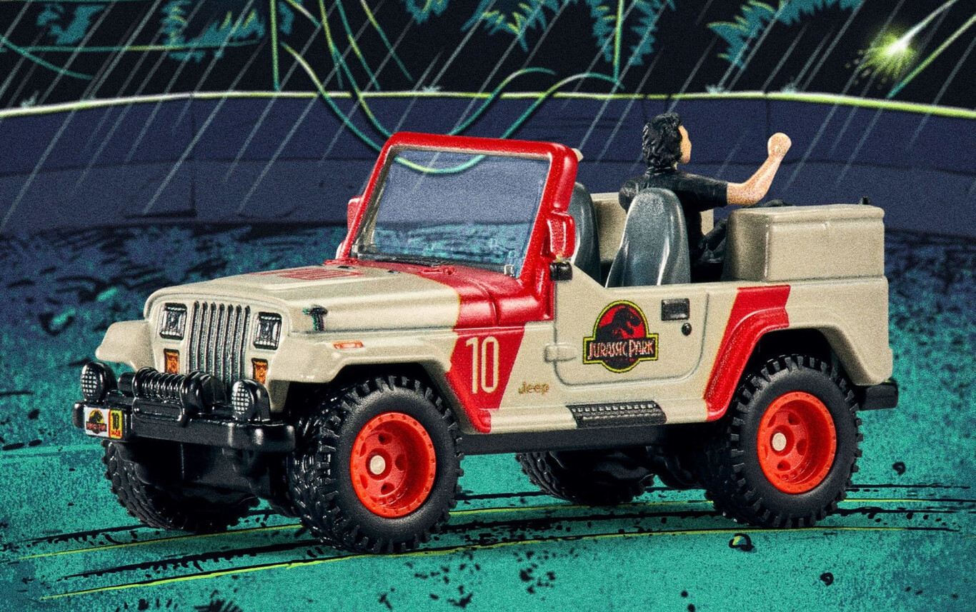 Precisamente es lo que inmortaliza este set de Hot Wheels que festeja los 30 años de 'Jurassic Park': incluye una reproducción del Jeep Wrangler Sahara del 92 modificado de la película. Es decir, con sus pinturas de guerra y todo lujo de detalles, por ejemplo el número de unidad luciendo en el lateral (es el mismo que el de la secuencia) además de que se asienta sobre unos neumáticos Real Riders 1552.