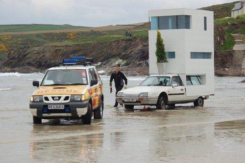 Entre sus muchas ocurrencias se les ha ocurrido algo así como llevarse la casa a cuestas cada uno en un coche, o al menos eso es lo que podemos interpretar por las imágenes que estos lectores han captado de varios momentos de la grabación.