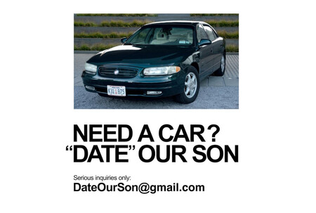 El reclamo del anuncio ya olía un poco raro: "¿Necesitas un coche? Ten una cita con nuestro hijo". Va ilustrado con la montura en cuestión, que es un Buick Regal de cuarta generación, y se añade un mail de contacto. Además se advierte que solo escriban los que estén verdaderamente interesados.