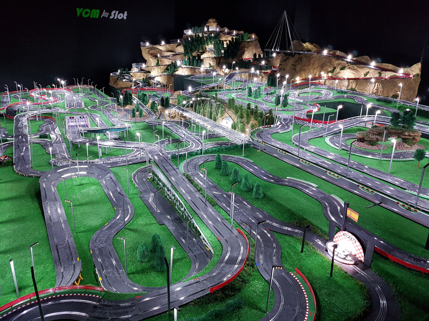 La pista de la marca ‘Scalextric’ más grande del mundo sobre maqueta mide 225 metros y se encuentra en Madrid, en una espectacular sala museo del Centro Comercial Bulevar de Getafe que ningún aficionado debería perderse: “VCM Slot”.