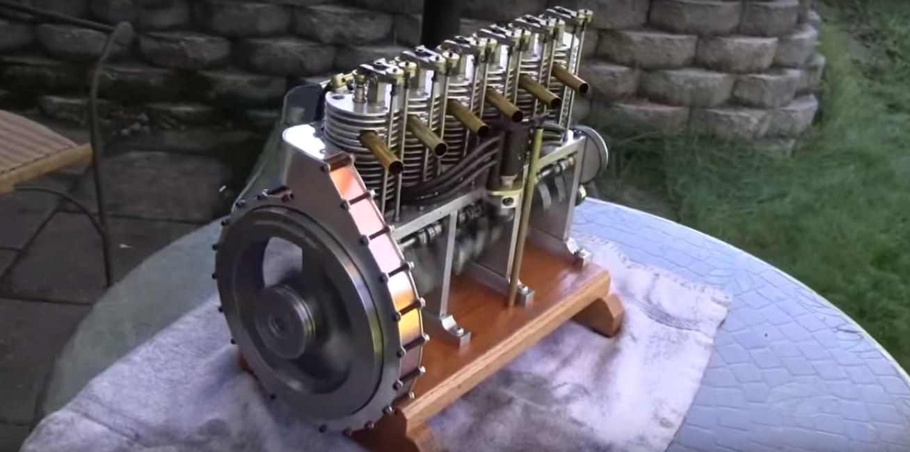 No es el primer motor en miniatura que vemos y tampoco es obra de Patelo, que nos tiene acostumbrados a sus obras de arte en miniatura movidas por aire a presión. En este caso se trata de un motor en miniatura alimentado por gasolina y es completamente funcional. Sí, gira, hace ruido y echa humo. Es una auténtica maravilla.