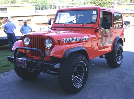Siendo un CJ-7, es extraño que su propietario no se decidiera por hacer una réplica del coche de Dixie, el CJ-7 blanco que llevaba la prima de los hermanos Duke. Aunque comparando imágenes, la segunda opción no sería tan espectacular, ni mucho menos.