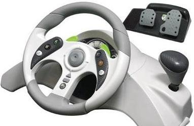El MC2 Racing Wheel presume de ser lo más real para la Xbox 360. Vibración más realista gracias al diseño en caucho, 10 botones de acción y apoyos retractables para las piernas. El volante no parece muy logrado, pero los pedales parecen pensados para el punta tacón. Cuesta 70 dólares.
