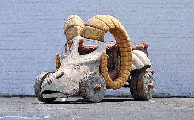 Se subasta los días 26 y 27 de julio en Santa Mónica, California. A falta de precio de salida, podemos hablar de sus principales bazas: cabeza de cabra de serie sobre chasis Isuzu, barras de protección tipo Cuerno de carnero y ruedas de roca para un pick-up de 3,05 metros de altura que se mueve gracias a la potencia muscular de sus ocupantes. La frenada viene garantizada por el sistema pie a tierra.