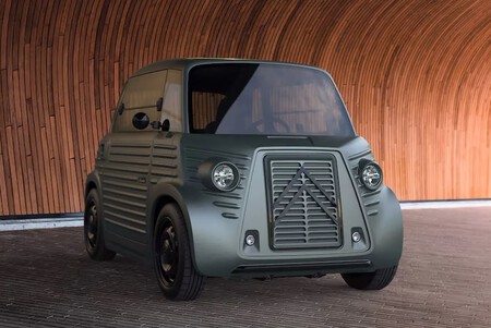 En esencia, la conversión consiste en la sustitución de los paneles originales del pequeño cuadriciclo por otros de fibra de vidrio que imitan el característico diseño acanalado de la furgoneta clásica. Como resultado, el frontal del Type-Ami destaca por su gran parrilla cerrada con el doble chevron de Citroën, evocando la del Type H.