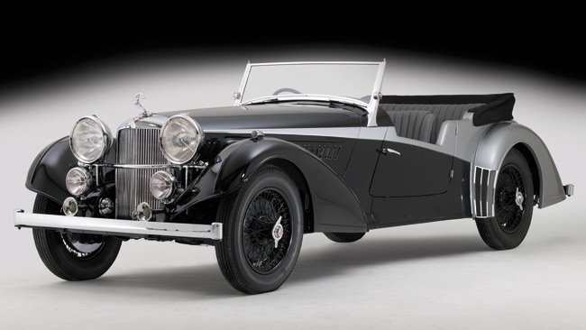 En aquel tiempo, en 1940, el máximo representante de esta marca británica era el Alvis 4.3 Liter, del que dicen era el coche más rápido de producción de aquella época con un motor atmosférico (no he podido comprobarlo, los registros son escasos), producido tanto en carrocería Sports Saloon y Sports Tourer (en la imagen). Su “reinado” solo duró 3 años y la producción conocida se limitó a 204 unidades.