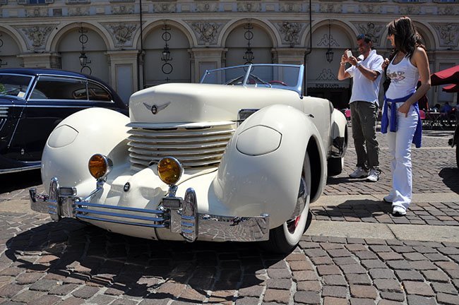 A este respecto, Gordon Buehrig y su equipo de diseño esbozaron en 1934 un modelo magnífico, radicalmente diferente a todo lo que se había visto hasta entonces. Con sus volúmenes llenos y ausencia de molduras, muchos de sus elementos solamente empezarían a verse en la calle diez años después.
