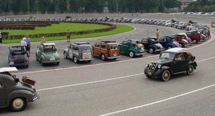 La semana pasada las calles de Turín viajaron unas cuantas décadas atrás y se volvieron a llenar de unas doscientas unidades del mítico Fiat 500 Topolino para celebrar su 70 cumpleaños. Entre otros lugares visitaron la mítica fábrica de Mirafiori, nombre que por aquí nos resulta familiar por las ediciones especiales Supermirafiori de Seat. ¡Qué tiempos aquellos!