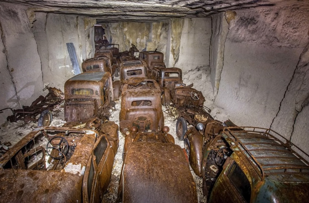 Lo que descubrió el profesor y fotógrafo belga Vincent Michel podríamos denominarlo un auténtico tesoro. Se trata de una gran colección de automóviles que lleva escondida en una vieja mina francesa desde la Segunda Guerra Mundial. Poco se sabe sobre su historia, aunque Vincent cree que se guardaron en este lugar para evitar que el ejército alemán los confiscara durante la invasión de Francia, y fueron olvidados después durante siete décadas.