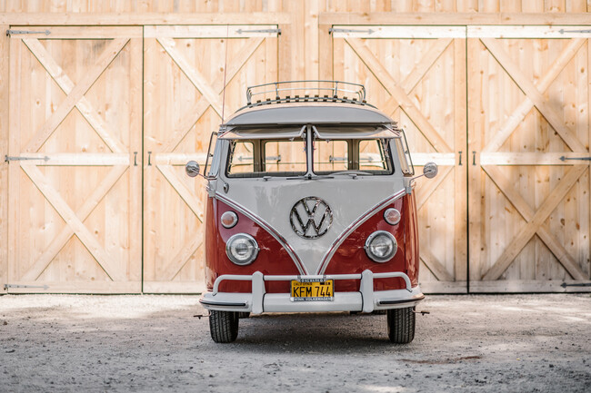 Acabada en su atractiva combinación de colores original “Sealing Wax Red” y “Silver Beige” con un interior en gris claro, este Microbus de 23 ventanas parece que acabe de salir del concesionario, pues está nuevo (si no mejor).