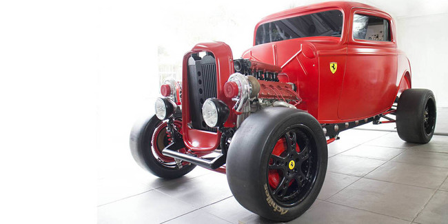 En la serie “cosas raras que te encuentras en los anuncios” no podíamos dejar de mencionar este extraño hot-rod a la venta en la popular (en EE.UU., al menos) página Craigslist. Normalmente, te esperas que un hot rod sobre Ford Coupé de 1932 equipe un V8 big block de lo más yanqui. Éste sin embargo, equipa un V8 de origen Ferrari.