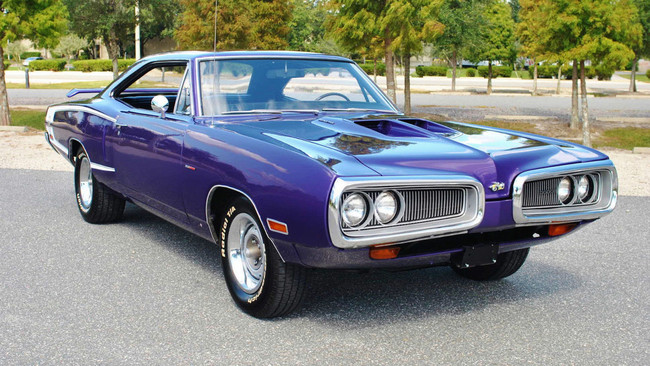 Esta unidad en concreto, a la venta en eBay por 50.000 dólares (unos 48.000 euros), luce un color de carrocería morado Plum Crazy y bajo el capó esconde el motor 383 Magnum V8 (6.3 litros) de serie -también se ofrecía un 426 Hemi más potente- con una potencia de 335 CV y en combinación con una caja de cambios manual de cuatro velocidades con palanca Hurst. Además, sólo tiene 65.971 kilómetros en el odómetro, una cifra muy escueta para sus cuarenta y seis años de vida.