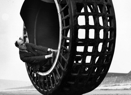 En 1930 una elegante mujer (que no es la de la foto de aquí arriba) subida a una especie de neumático gigante mostraba al público el funcionamiento del vehículo cuyo volante sostenía. Era el Dynasphere, una locura etiquetada como 'movilidad esférica' creada entonces para revolucionar el transporte moderno.