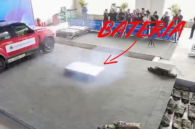 La inusual demostración fue capturada en un vídeo que se hizo viral en las redes sociales chinas. El vídeo muestra una batería saliendo disparada del lateral de un SUV antes de que aparezca humo. Los trabajadores de seguridad cubrieron rápidamente la batería con una manta ignífuga después de que aterrizara en una zona designada y que amortiguaba el aterrizaje.